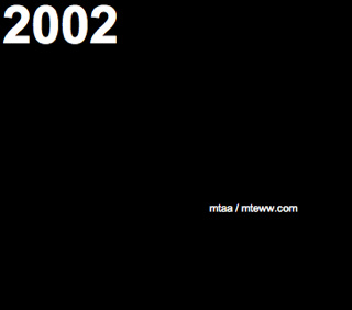 Artists M. River and T. Whid founded MTAA in 1996 as a collaborative platform for conceptual investigations of authorship and artistic intent. Their output includes several nihilistic "updates" of classic works of process art, using simple algorithms as labor-saving devices that undo the heroic character of an artist's repeated actions over a long period. Their splash page for Rhizome updates On Kawara's lifelong project of marking each date of his life with a painting.