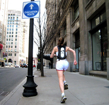 Boston-based artist Kanarinka maps her city's evacuation route in the project It takes 154,000 breaths to evacuate Boston. The route was set-up as a means of escaping the city in the event of a major natural disaster or terrorist attack, and the path's infrastructure cost locals nearly $1-million--which the artist interprets as a major investment in fear. In a currently-ongoing series of public runs throughout this path and podcast videos of the exercises, Kanarinka uses a subjective, corporeal model to measure the space of what she calls a post-9/11 new geography of insecurity.